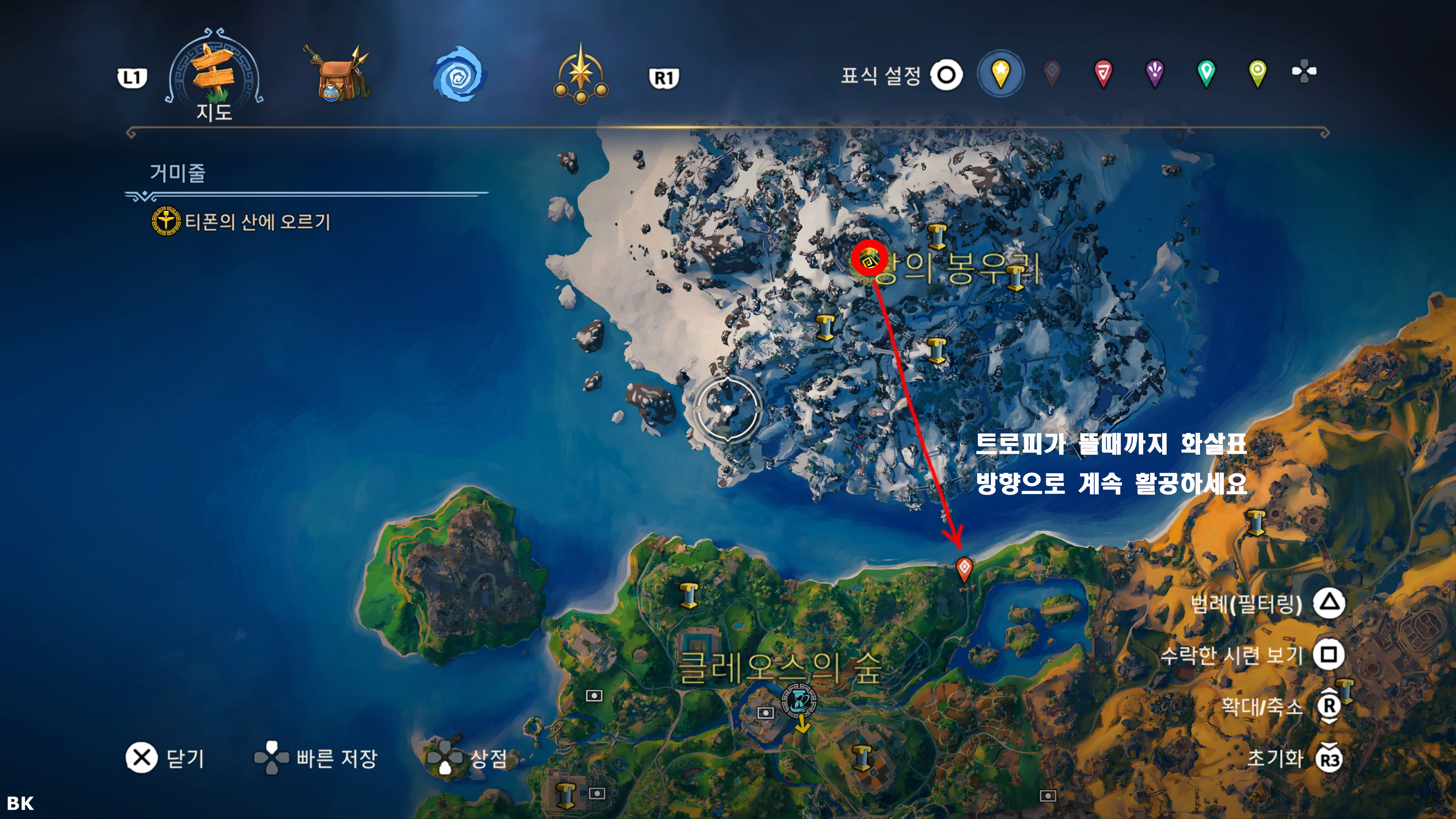 마지막 보스인 티폰을 상대하러 동굴에 들어가기전에 마지막이니 세이브를 하라고 합니다. 반드시 세이브 파일을 만든 후에 마지막 보스를 도전 하시던가, 보스를 상대하지 말고 보스 격파 트로피를 제외한 나머지 트로피를 모두 얻은후에 엔딩을 보고 플래티넘을 얻어도 됩니다 (엔딩이후 뉴 게임+가 가능해져서 뉴 게임+로 시작을 해서 트로피 작업을 할수도 있습니다만 트로피 작업은 엔딩직전에 몰아서 하는게 편합니다.)