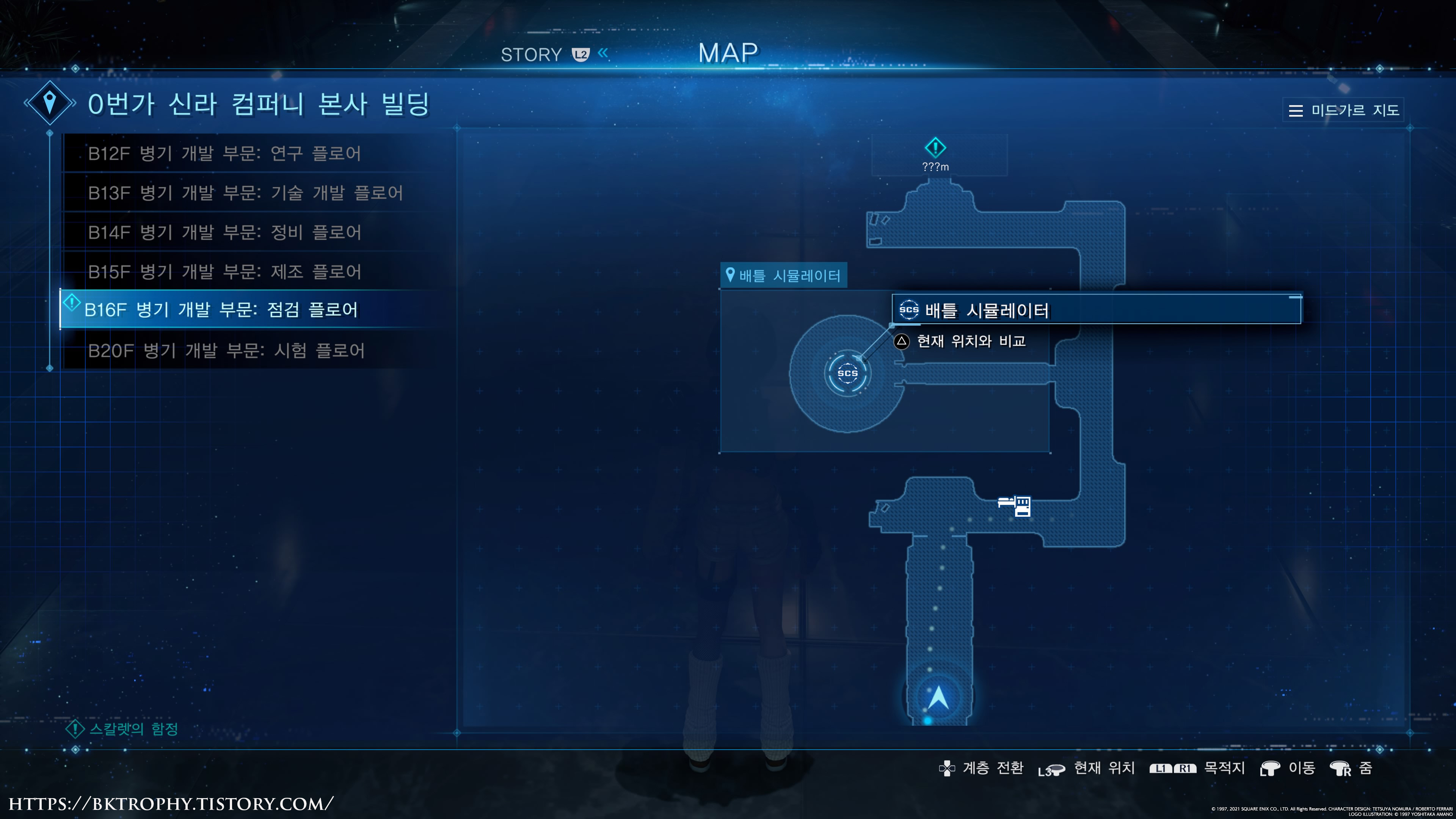 이번 DLC에서 제일 어려운 트로피입니다. 2회차의 챕터2로 가면 신라빌딩에서 갈수 없었던 배틀 시뮬레이터 방을 갈수가 있게 됩니다. (배틀 시뮬레이터의 위치는 아래의 이미지를 참고 하세요)