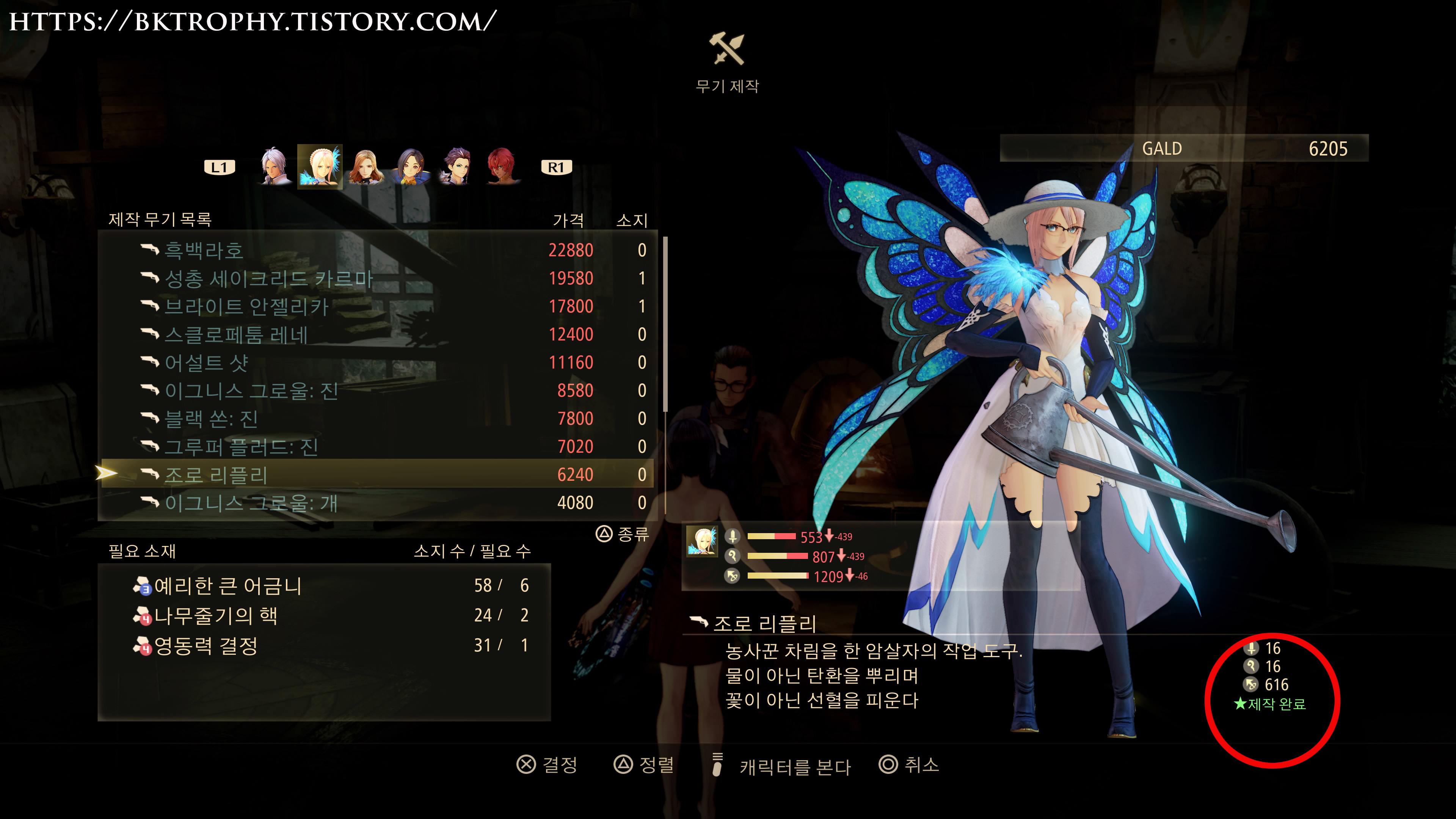 만일 무기 제작을 할때 재료가 없는것은 터치패드를 눌러 라이브러리 > 에너미 리스트 항목으로 가서 적이 드랍하는 아이템과 적의 출현 지역을 알수가 있으니 모자란 재료는 에너미 리스트를 활용하여 무기를 제작하세요