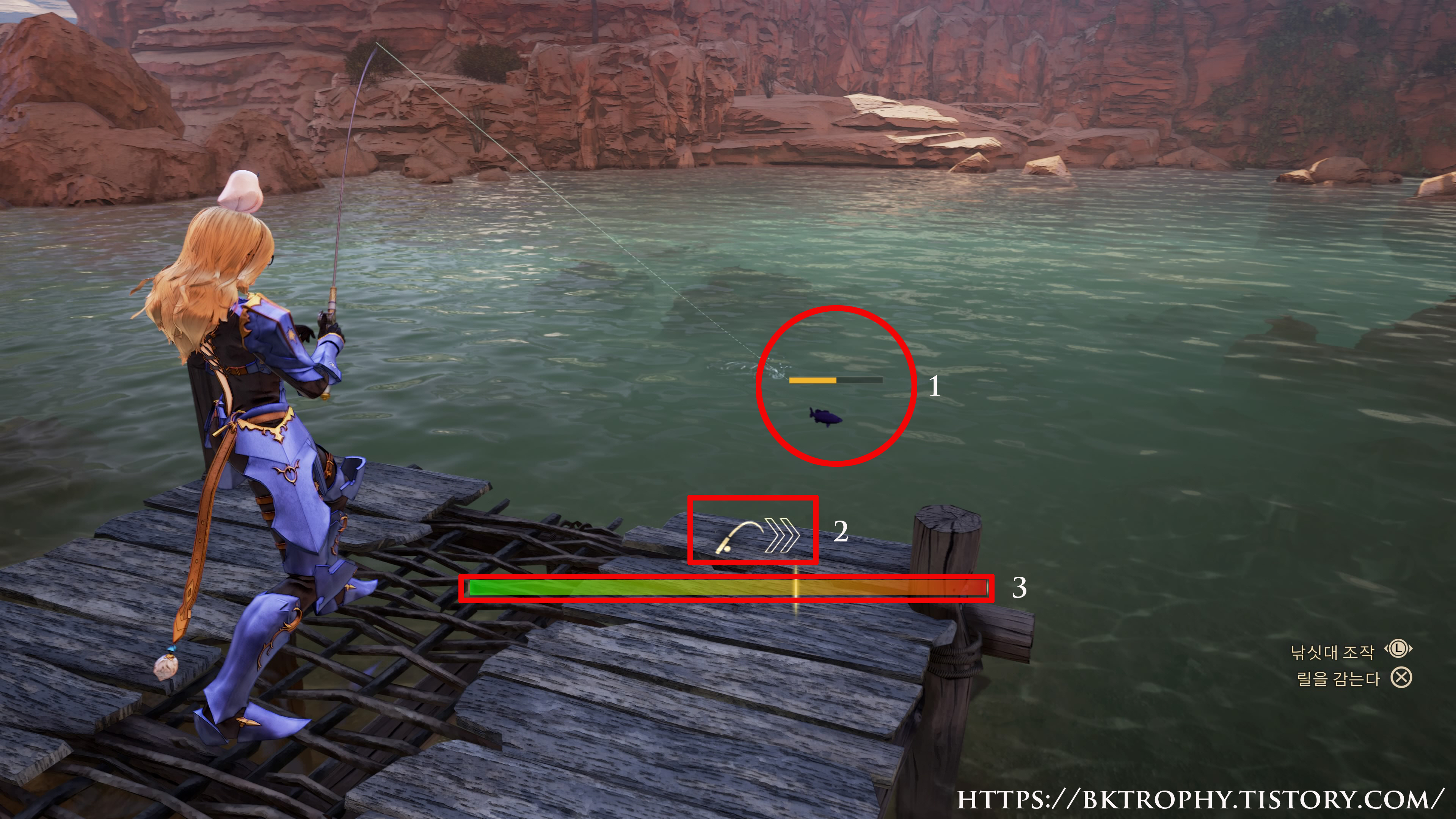 3번은낚시대의 내구도로 버튼 액션이나 낚시대를 제대로 기울이면 왼쪽으로 올라가지만 반대로 실패하면 오른쪽으로 내려가며 오른쪽 끝까지 가게되면 낚시줄이 끊어져서 다시 물고기를 낚아야 합니다.