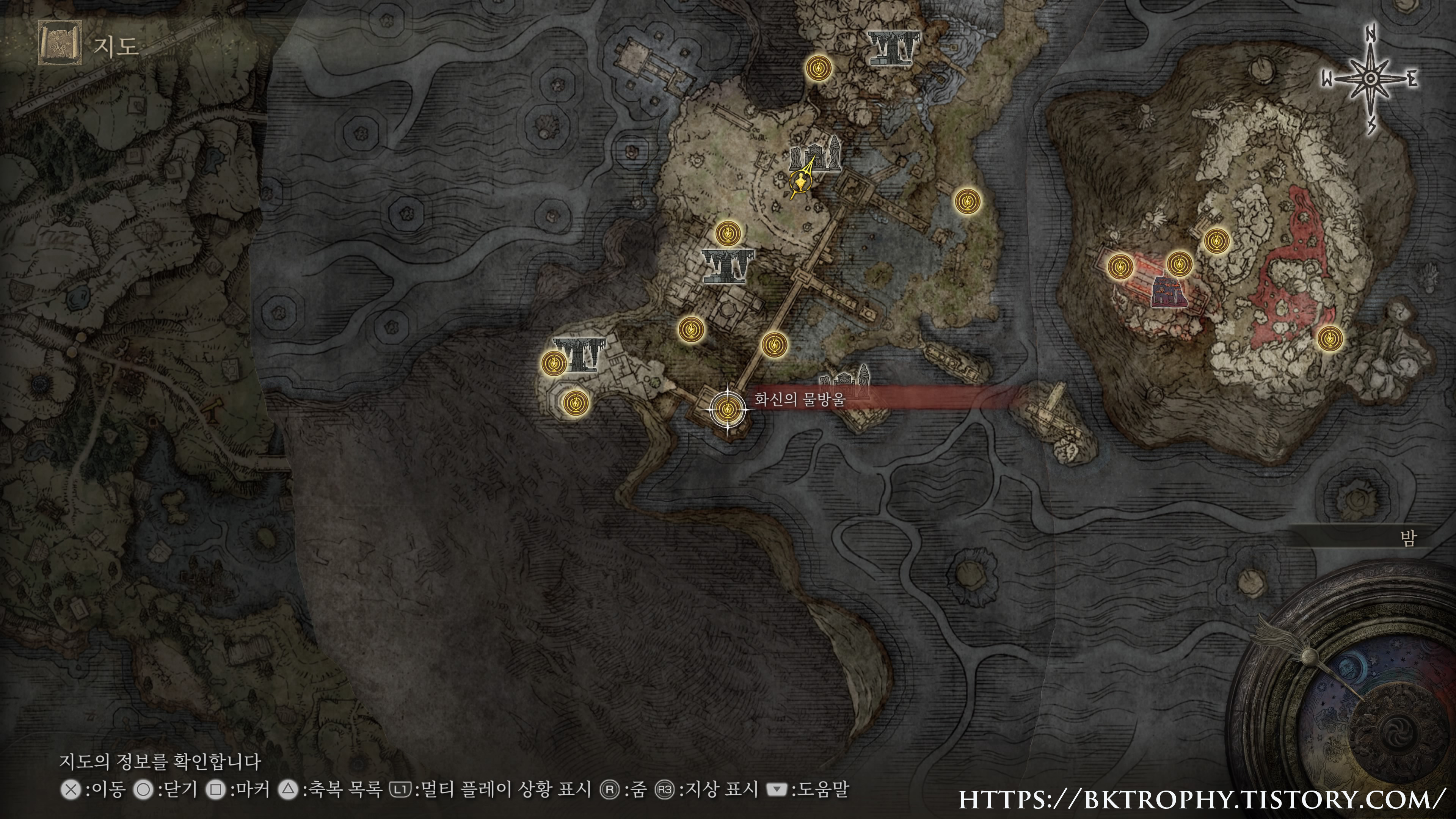 불의 거인은 게임 후반부 지역인 거인들의 산령에 있습니다. 아래 이미지에 동그라미 친 부분으로 가면 바로 거인과 싸우게 됩니다.