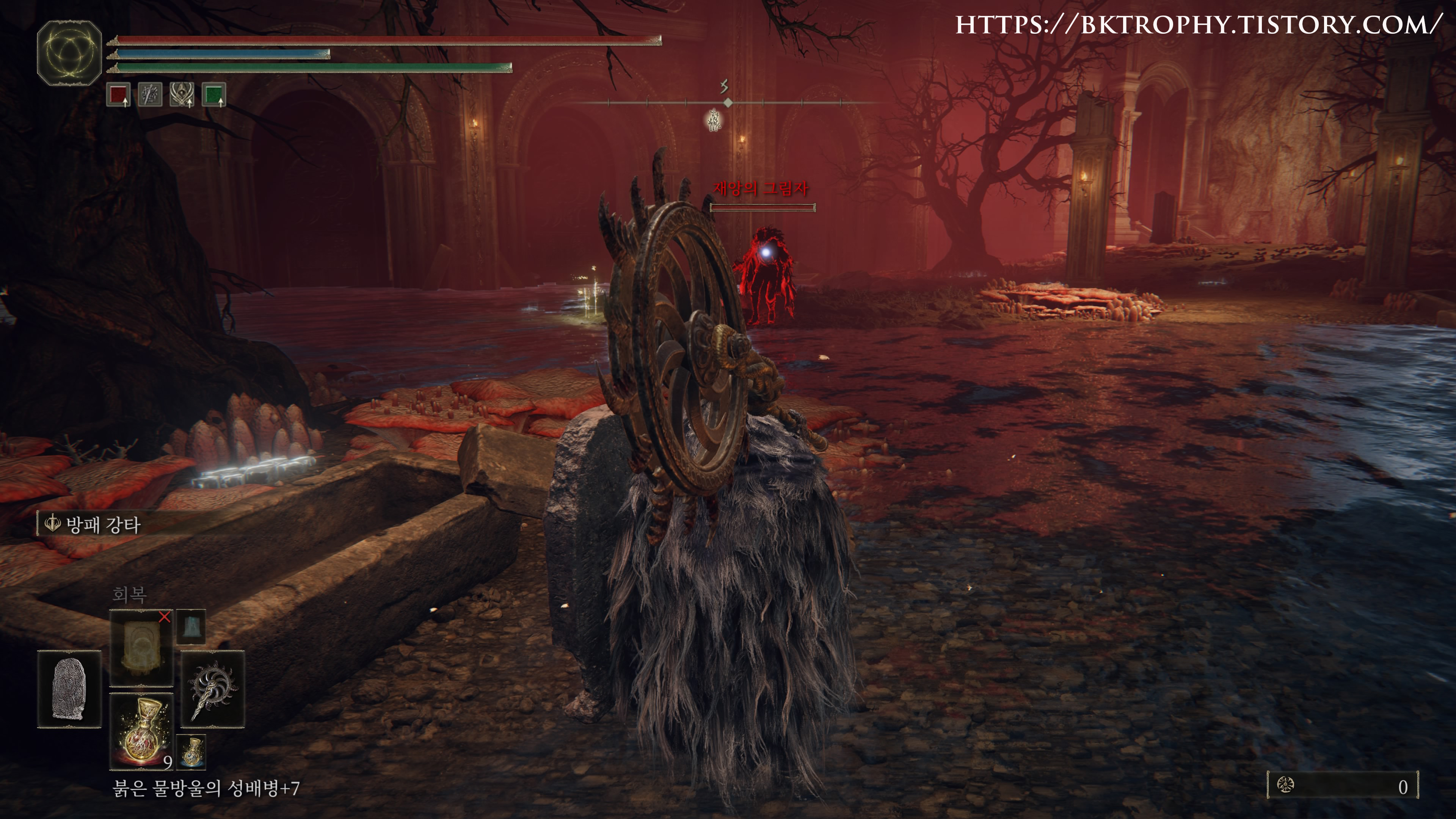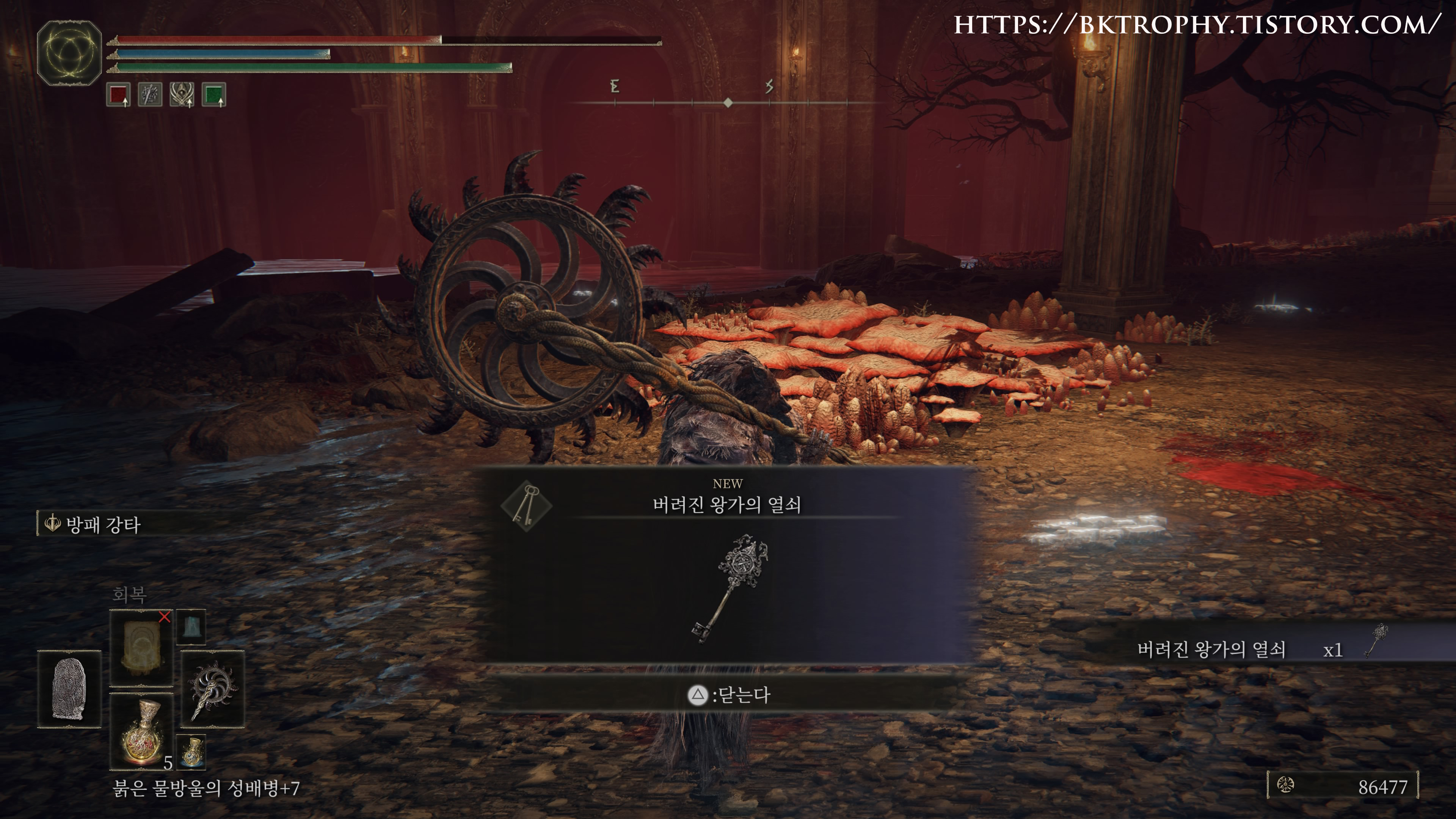 이제 다시 부패한 호수로 가서 호수를 건너야 하는데 건널동안 부패에 걸려 HP가 계속 깍이니 붉은 성배병과 부패 이끼약을 최대한 많이 챙긴후에 호수를 건너야 합니다. (보이는 아이템 신경쓰지말고 계속 달리세요)