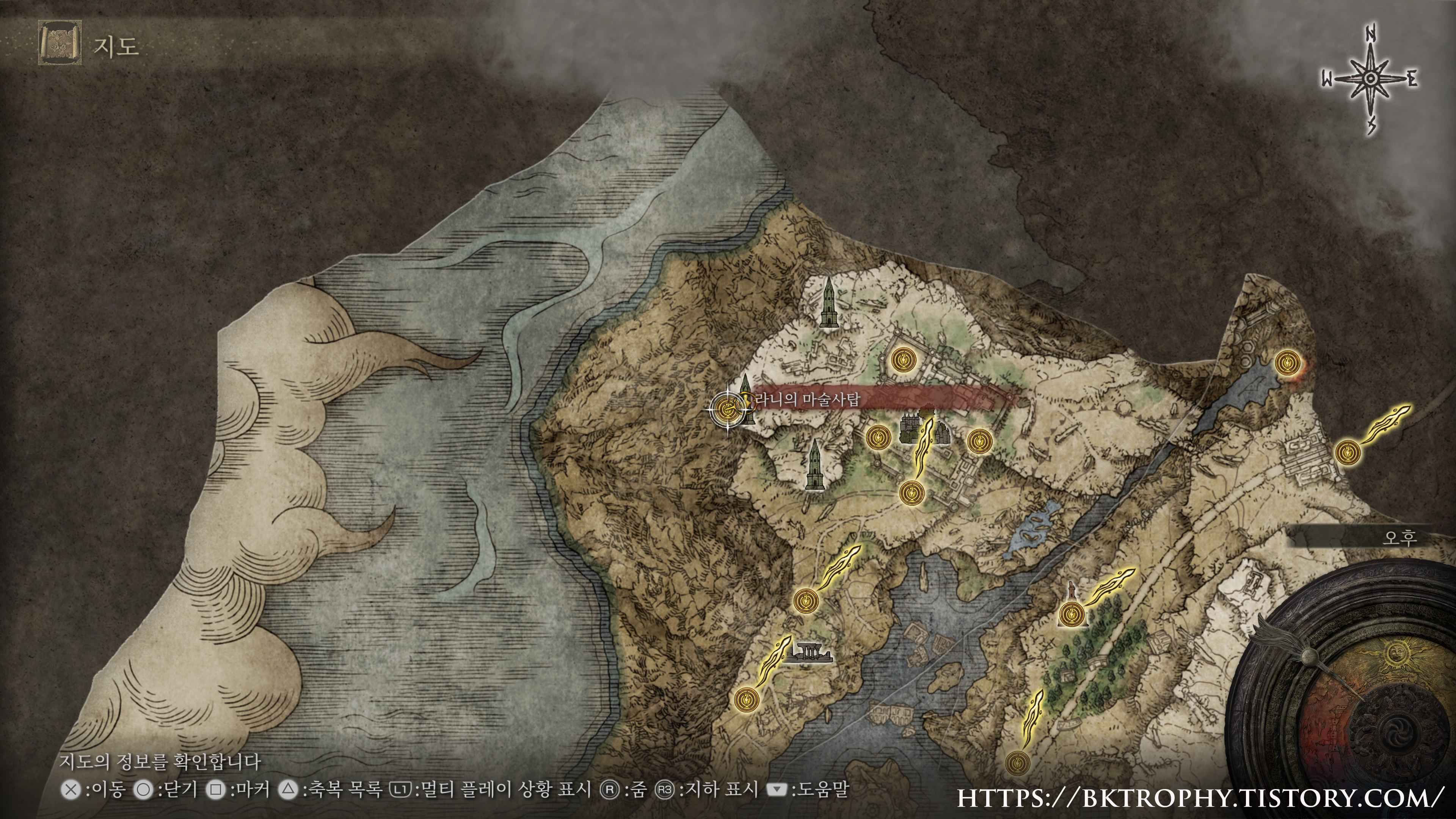 하이트 요새 서쪽으로 가서 빨간 동그라미 친 곳으로 가면 땅속에서 바위들이 허공에 떠있는 모습을 볼수가 있습니다. 이곳이 노크론으로 가는 입구로 말을 타고 아래로 계속 내려가면 노크론에 도착하게 됩니다.