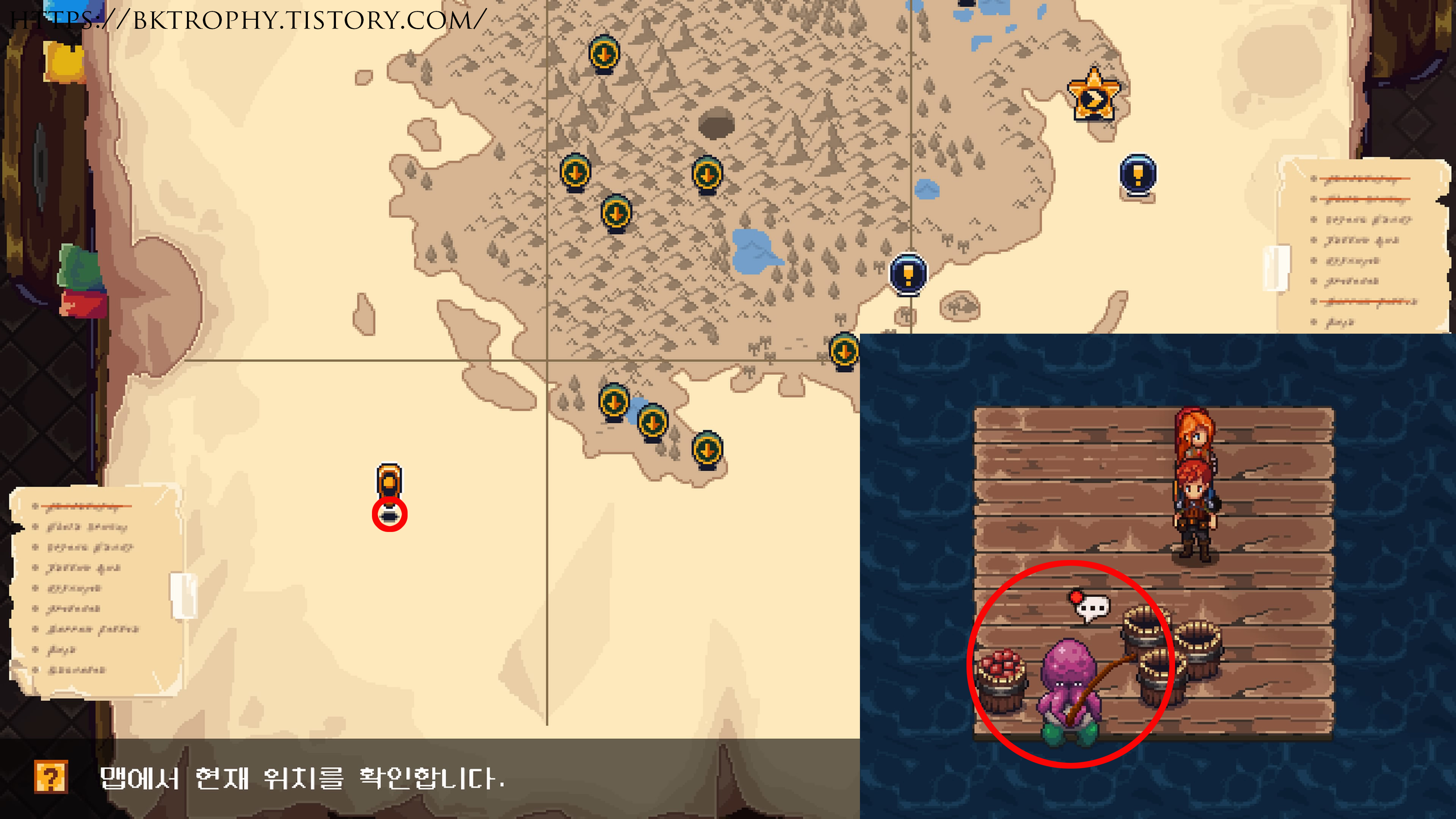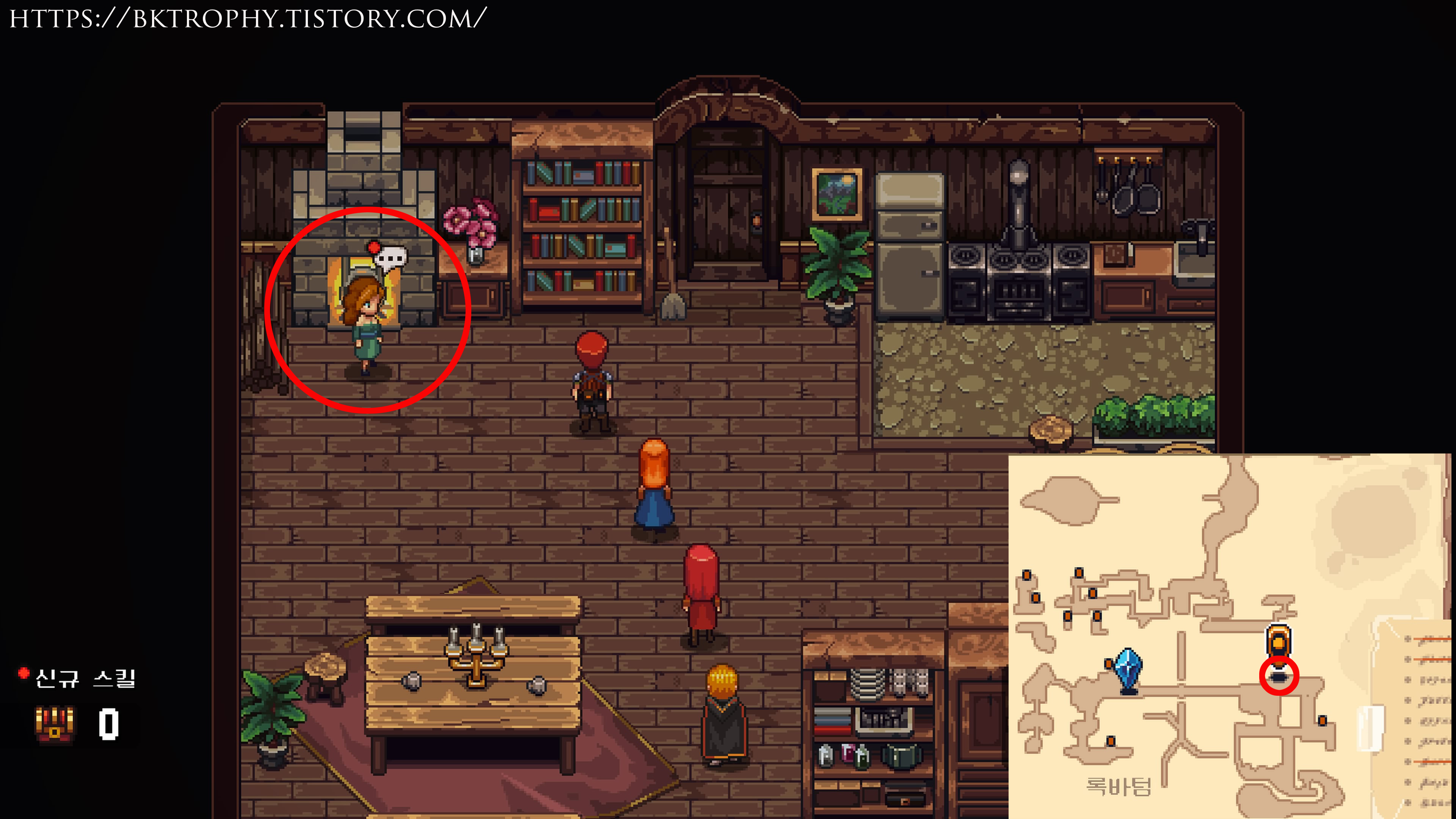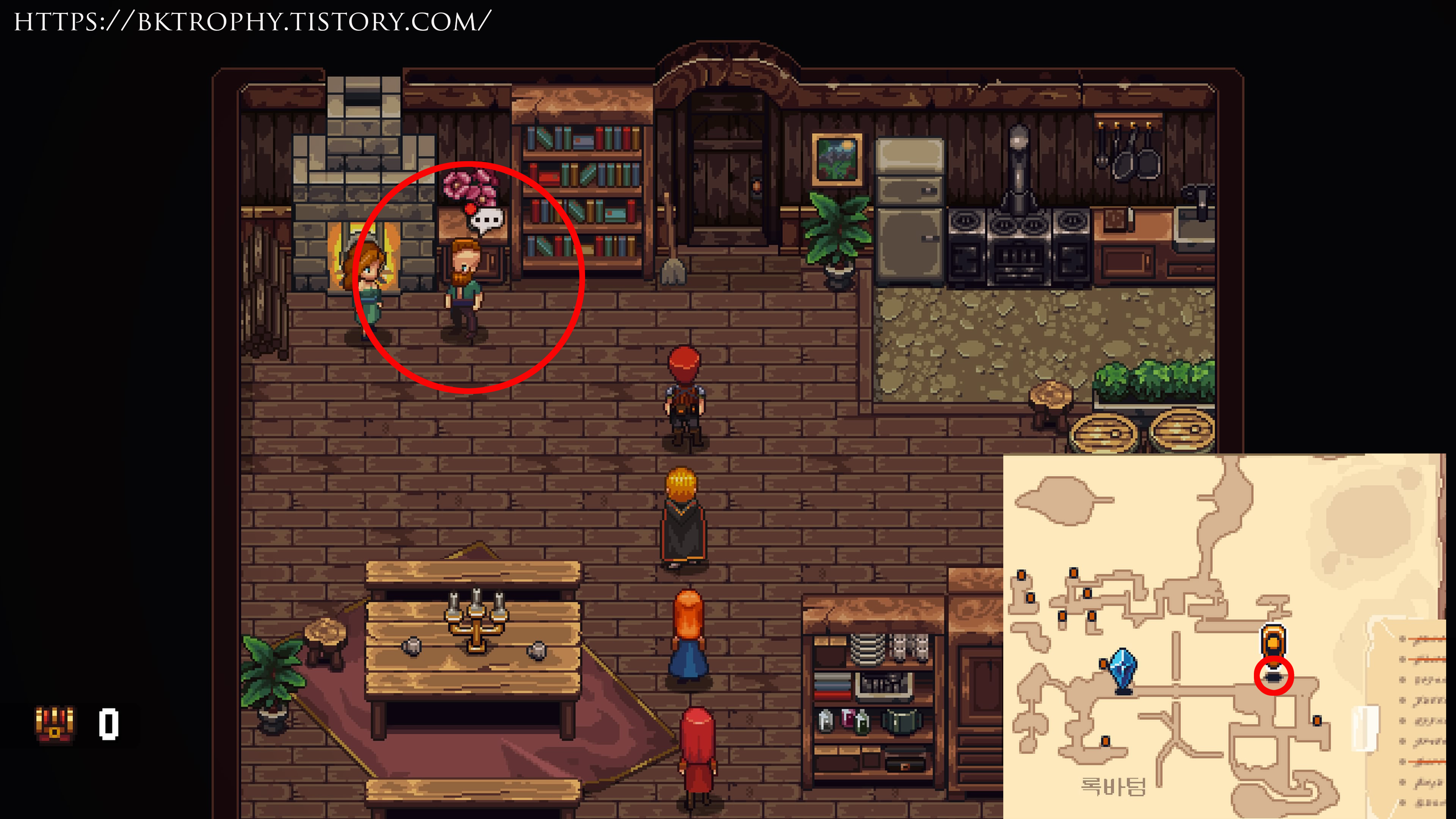 ▶ 베른트 - 록바텀 마을에서 만날수 있으며 지도에 표시된 위치에 있는 집으로 들어가면 됩니다. 베른트는 나중에 클랜 레벨이 4가되면 은둔자의 섬 기지내부에 있는 보물상자가 있는 길을 뚫어줍니다.