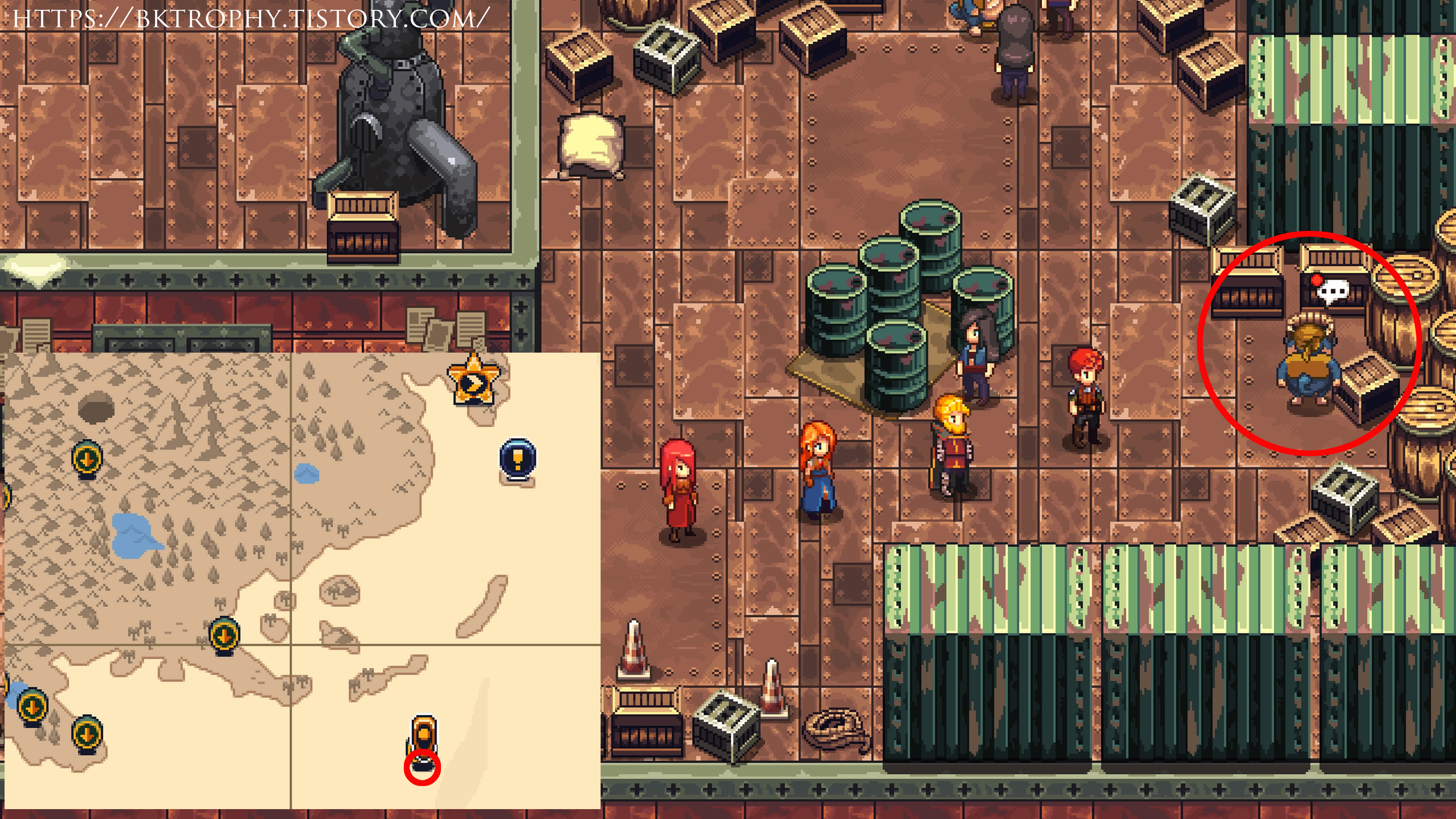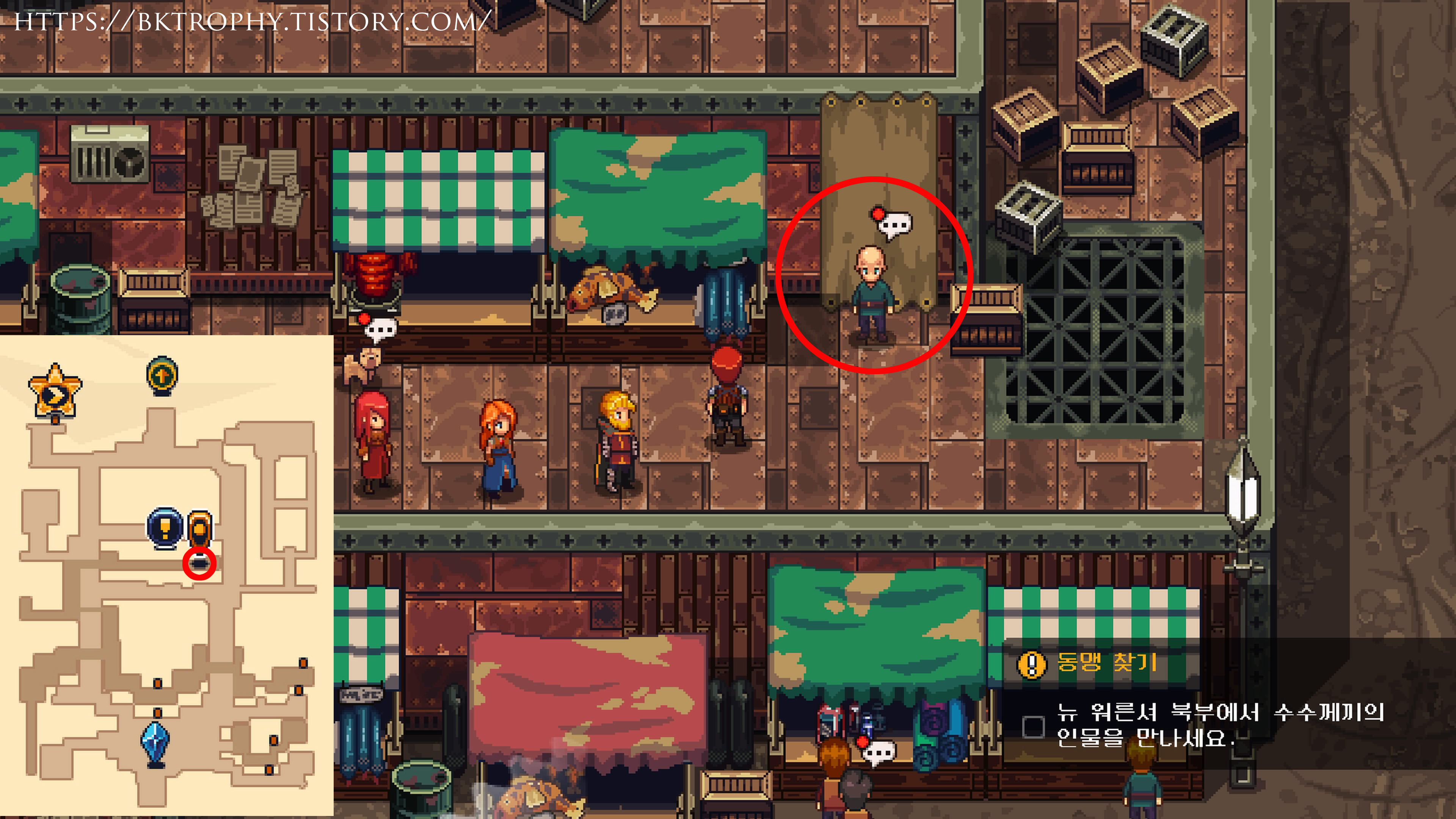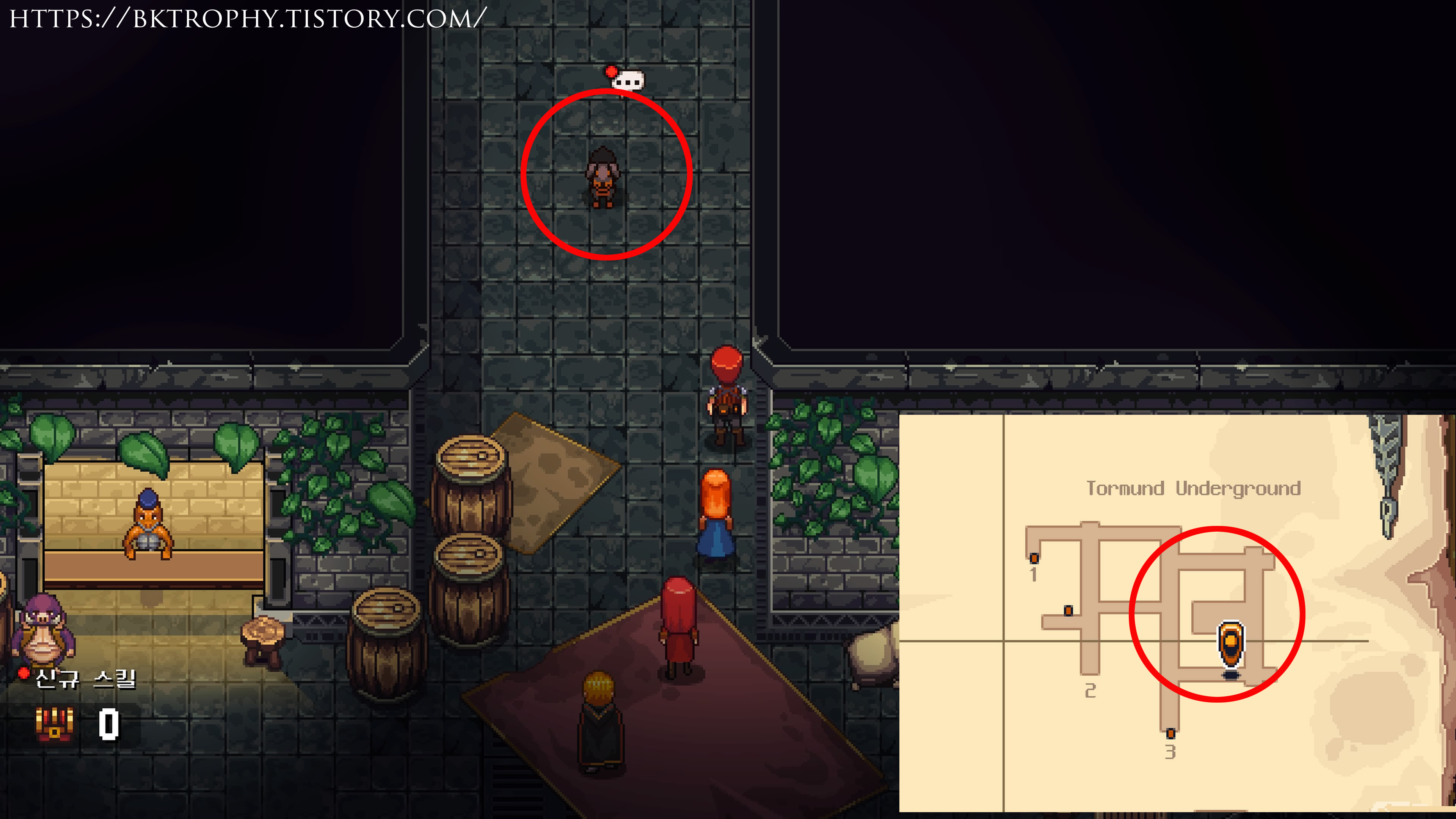 ▶ 베른트 - 록바텀 마을에서 만날수 있으며 지도에 표시된 위치에 있는 집으로 들어가면 됩니다. 베른트는 나중에 클랜 레벨이 4가되면 은둔자의 섬 기지내부에 있는 보물상자가 있는 길을 뚫어줍니다.