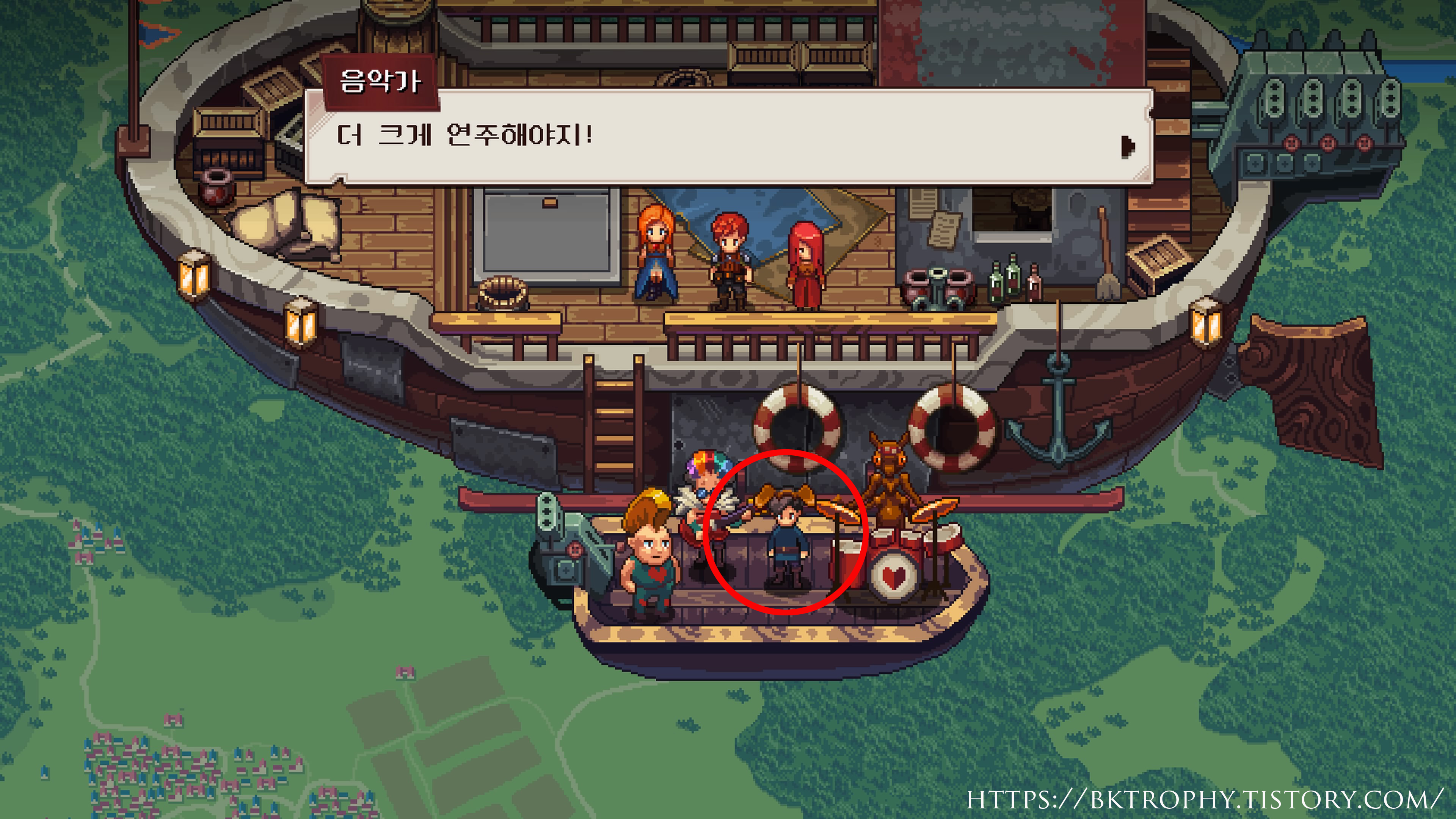 ▶ 에디 - 지도의 서쪽(대략 파른 스포트에서 10시 방향 계속 날아다니기 때문에 움직이면서 찾아봐야 합니다.)으로 가면 날아다니는 배를 발견할수가 있습니다. 그 배와 상호작용을 하면 이벤트 이후 에디가 클랜원으로 합류하며 클랜이 일정 레벨이 도달하면 에디의 멋진 음악을 들을수 있게 됩니다.