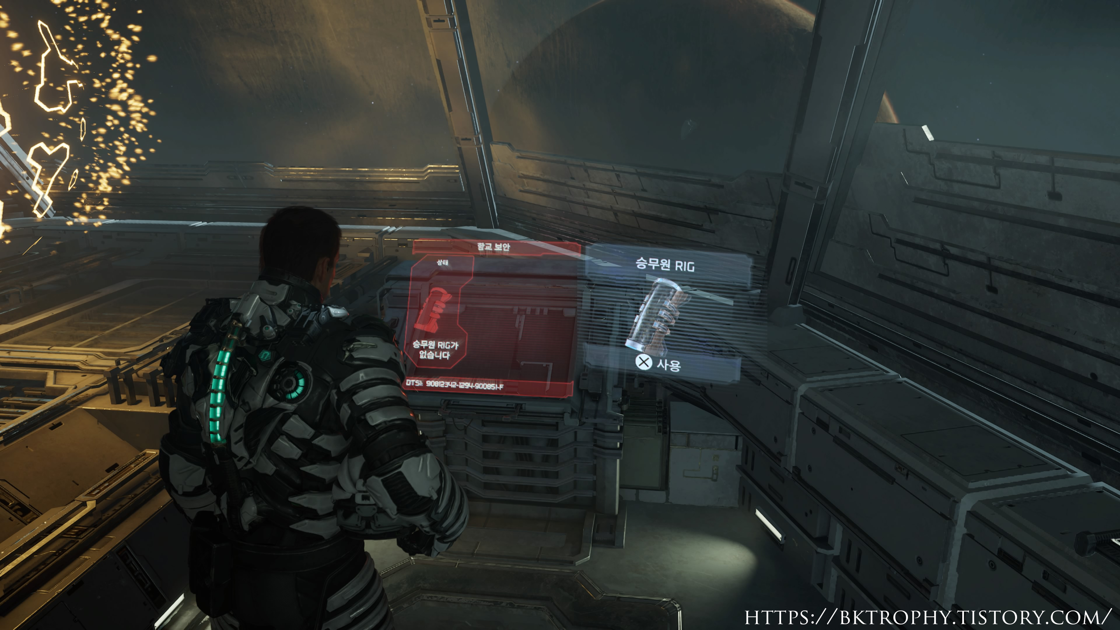 이 트로피는 원래 네크로 모프의 팔 다리가 약해졌을때 키네시스로 강제로 뜯어내야 얻을수 있는 트로피지만 아주 쉽게 트로피를 얻는 방법이 있습니다. 챕터 2를 진행하면서 의료실로 갔을때 하이드라진 탱크를 얻으러 무중력 치료 정비실로 갑니다. (아래 위치 참고)