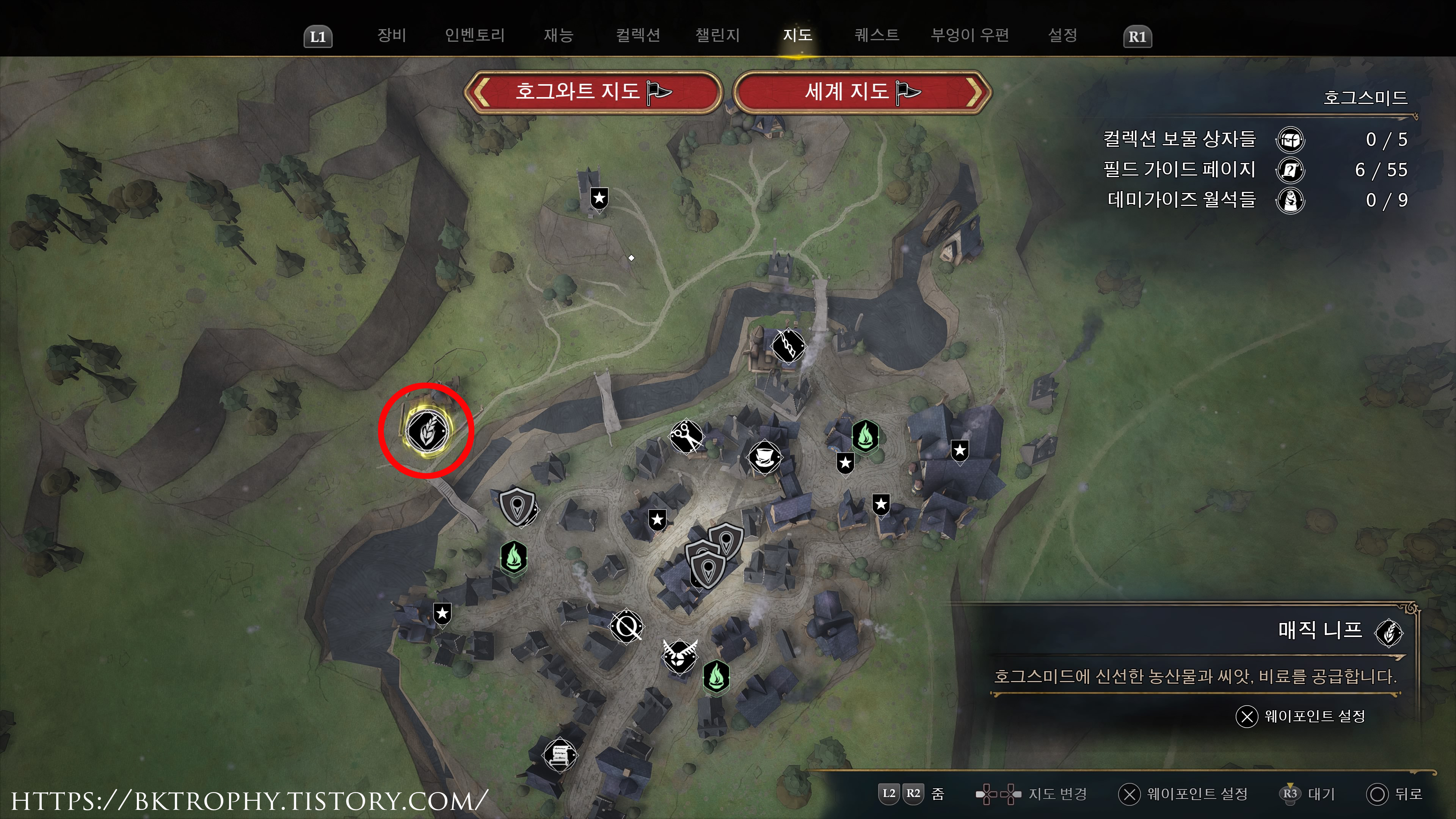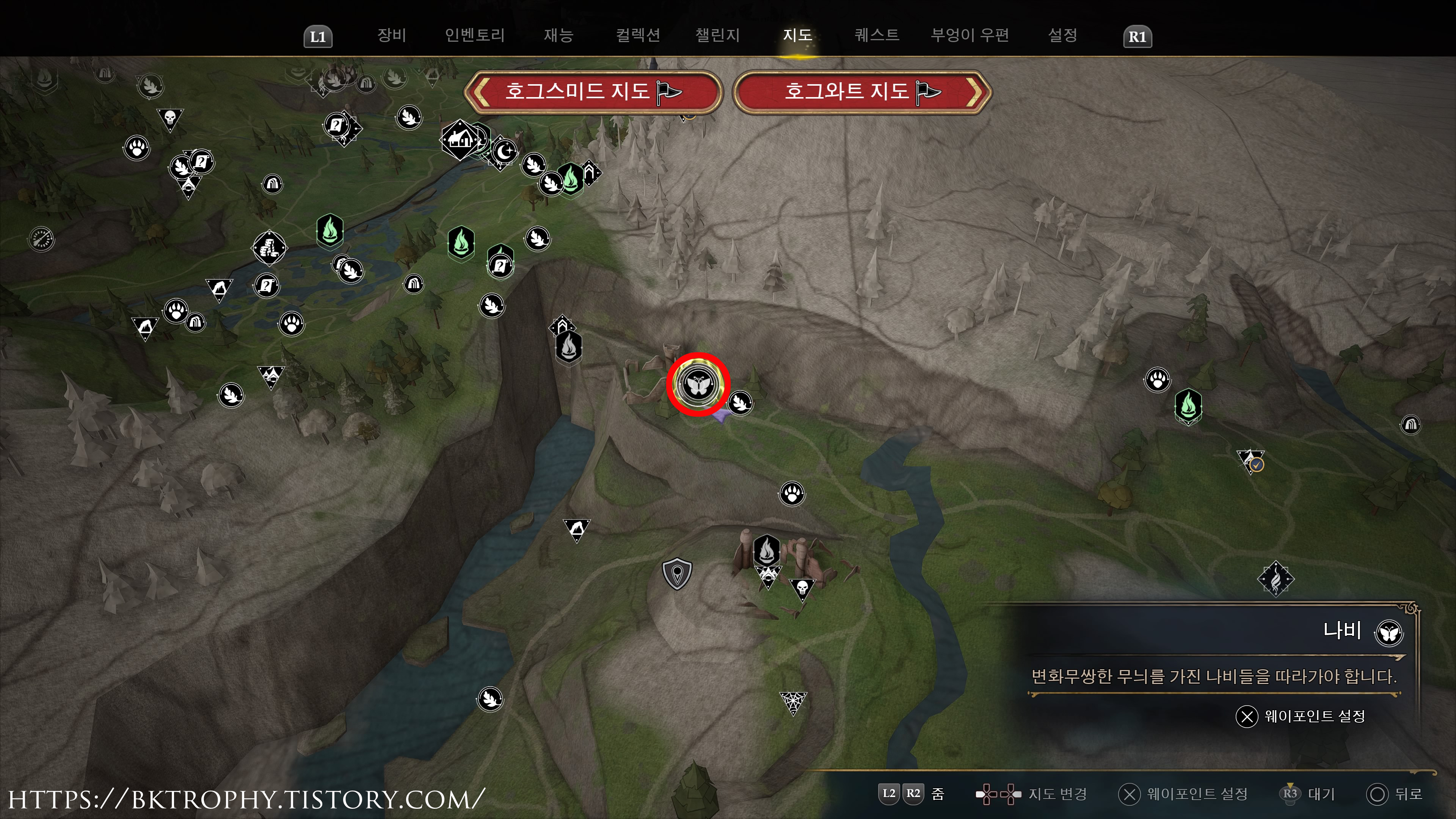 호그스미드로 가면 스리 브룸스틱스 술집에 월러지 부인이 있습니다. 그녀와 대화를 하면 사이드 퀘스트 : 나비들을 따라가기를 플레이 할수가 있는데 이 사이드 퀘스트를 완료하면 쉽게 트로피를 얻을수가 있습니다.