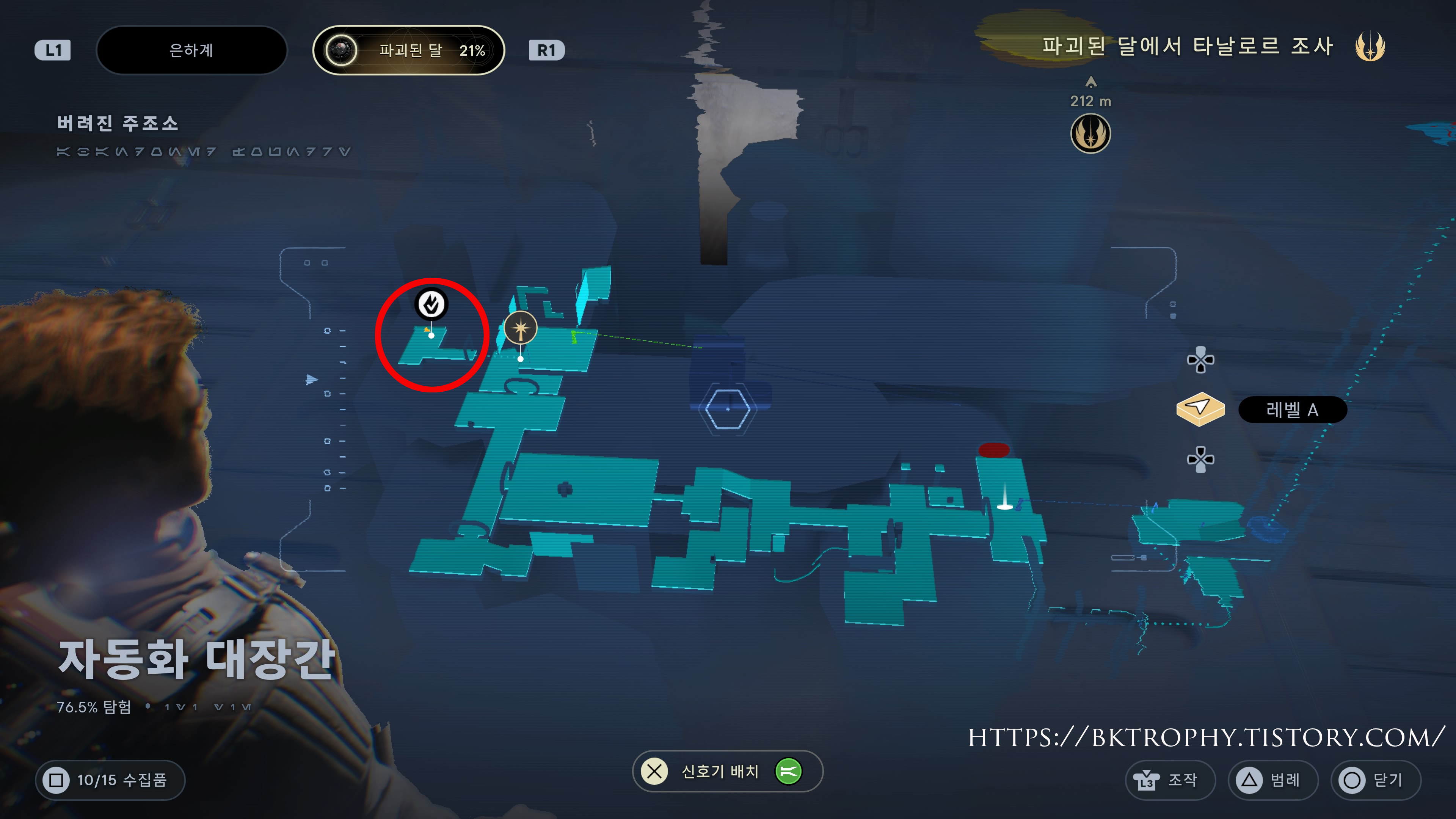 트로피 작업을 하기 좋은 장소는 파괴된 달에서 초반에 포스 균열이 있는 장소가 있습니다. (위치는 아래 이미지 참고) 여기서 포스 균열을 사용하면 전투 드로이들을 떼거지로 상대하게 되는데 드로이드들이 많이 나와서 감속 걸고 처치하기도 좋고 적을 많이 처치하면 감속 게이지도 빨리차서 금방 50명을 처치할수가 있습니다.