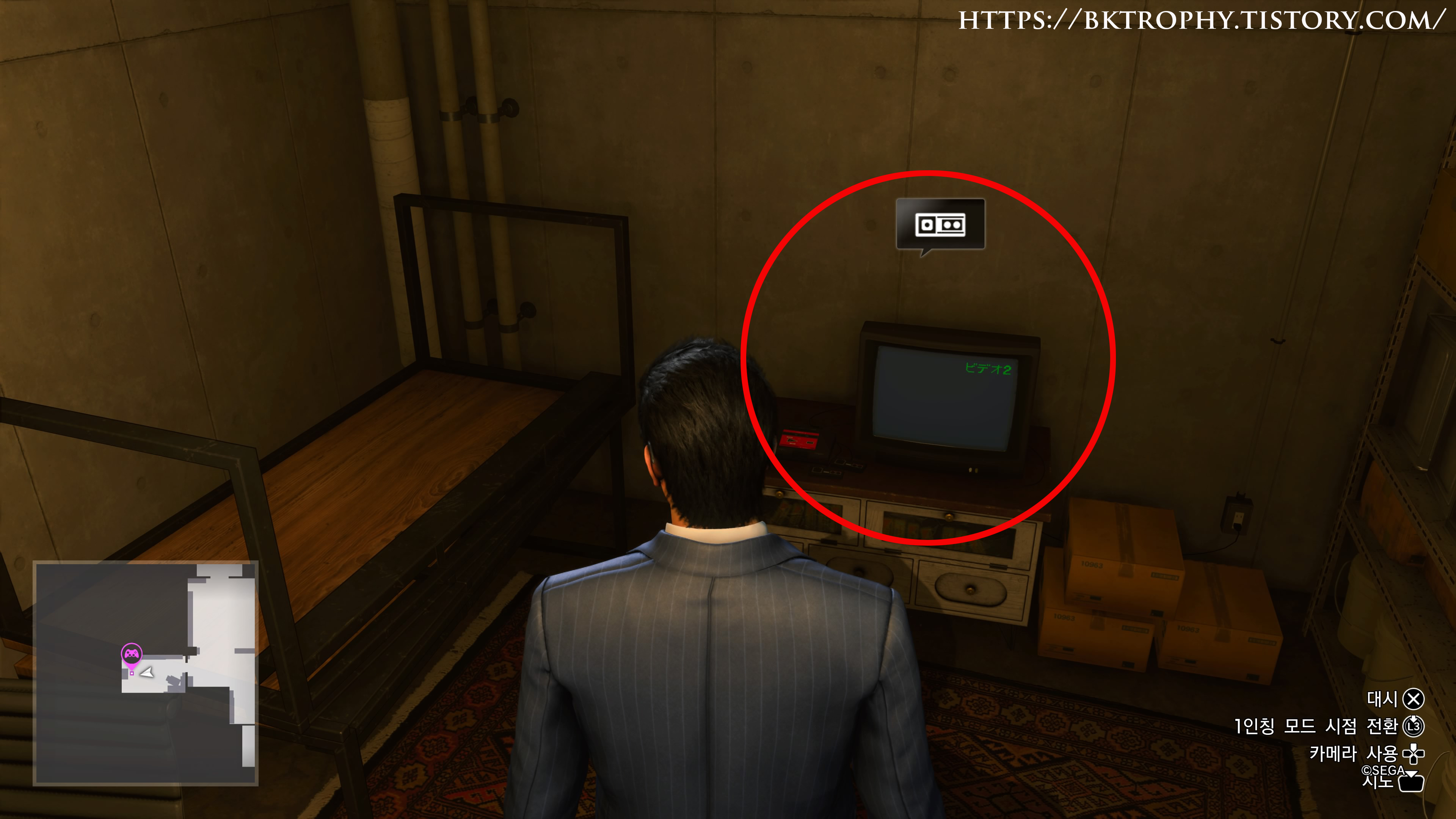 마스터 시스템은 챕터 2를 클리어한 이후부터 플레이 할수가 있습니다. 소텐보리에 있는 다이도지의 아지트에 가면 구석방에 마스터 시스템을 플레이 할수 있는 기계가 있습니다.(아래 이미지 참고)