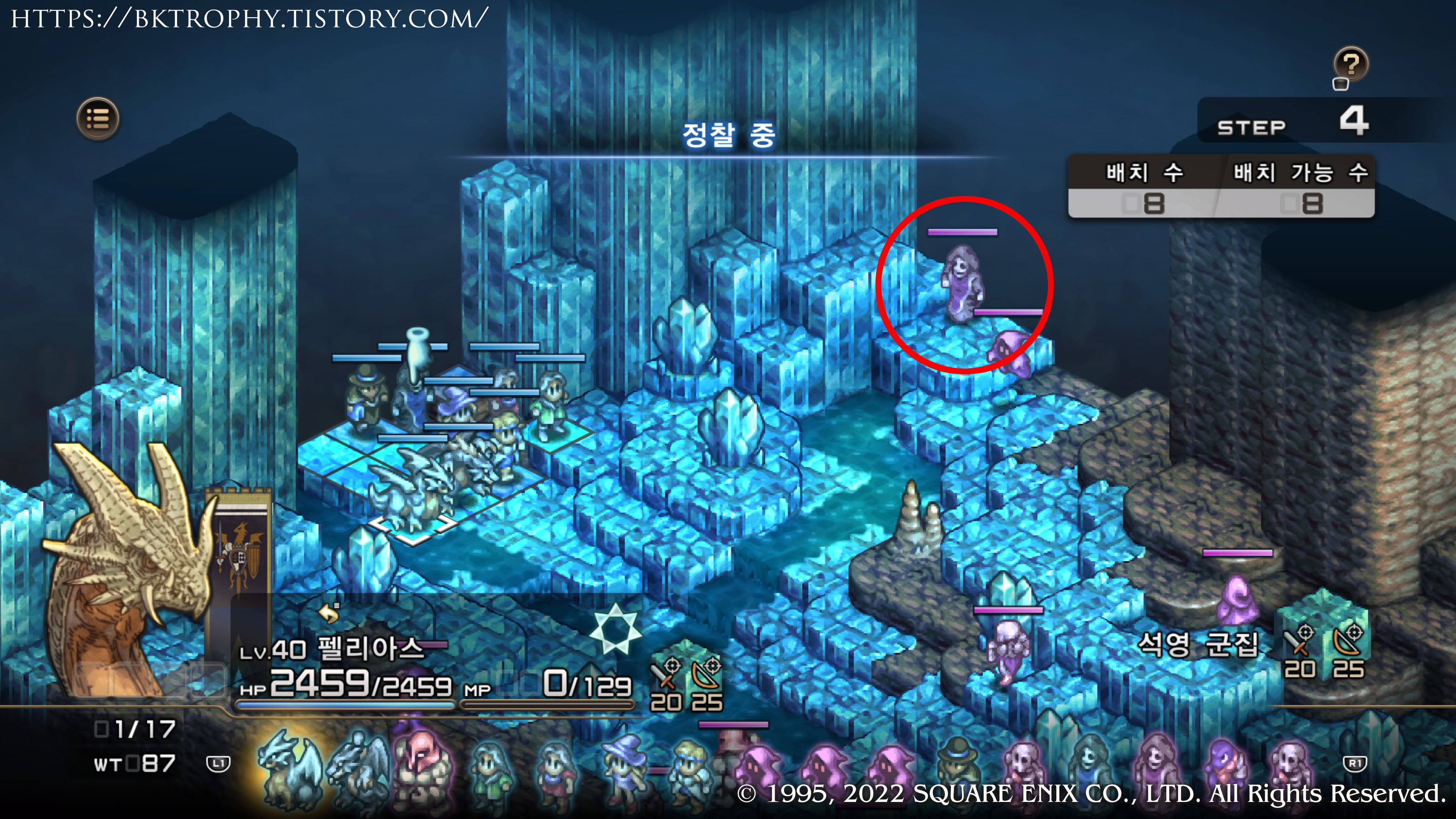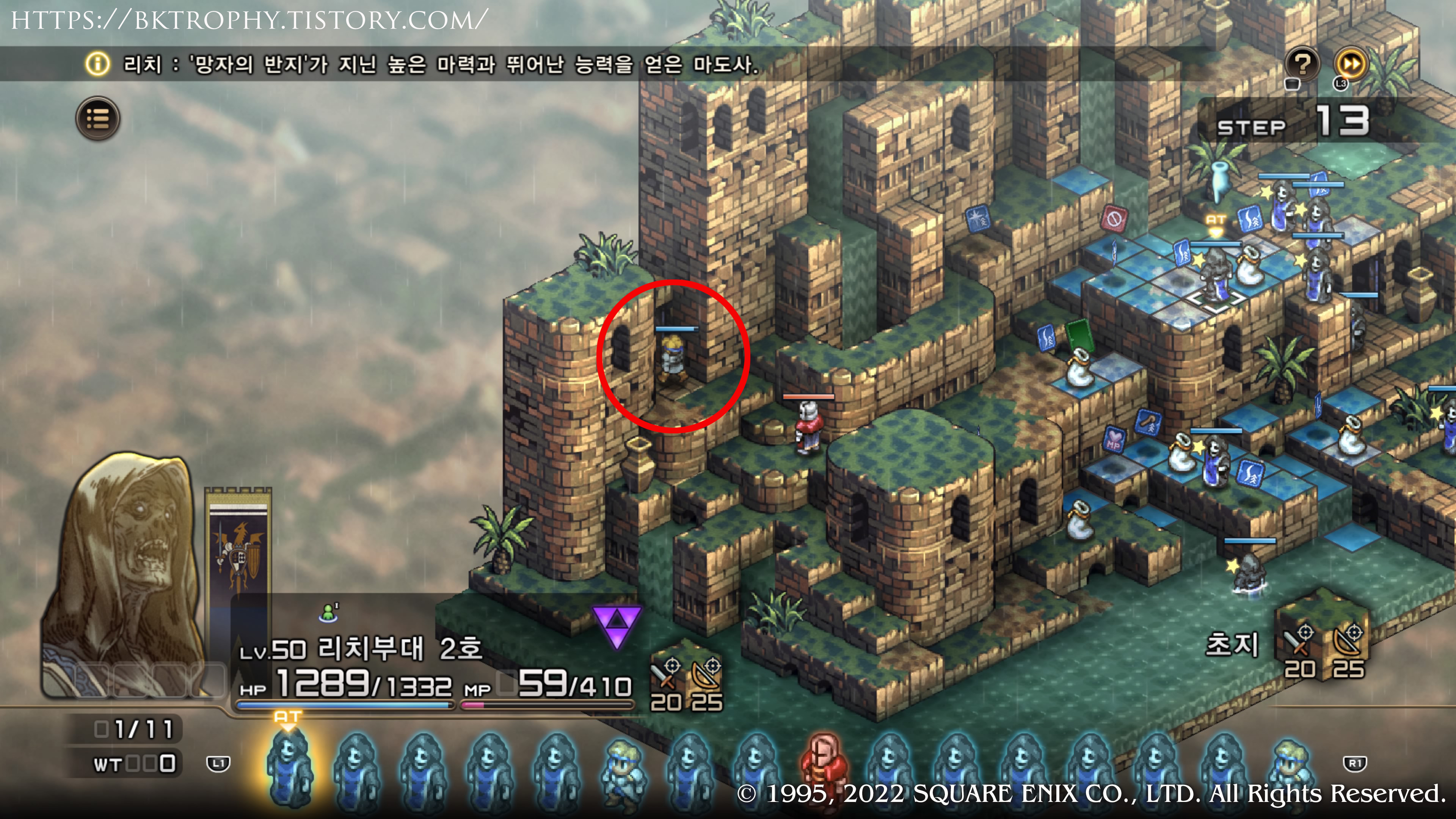1. 아젤스탄과 관련된 이벤트를 보다 보면 해적의 유적에 가게 됩니다. (아젤스탄와 관련된 이벤트를 못봤어도 이 꼼수는 진행가능 합니다.) 여기서 앞으로 진행을 하다 보면 탄식의 파문까지 가게 되는데 여기를 한번 클리어 한 이후에 다시 오면 가끔가다 리치가 나올때가 있습니다. (아래 이미지의 동그라미 친 적이 리치입니다. 특이한 점은 이 맵의 적들은 우리편의 레벨보다 1레벨 위의 레벨로 등장합니다. 예를들어 현재 파티의 레벨이 40이면 41의 적이 등장합니다.)