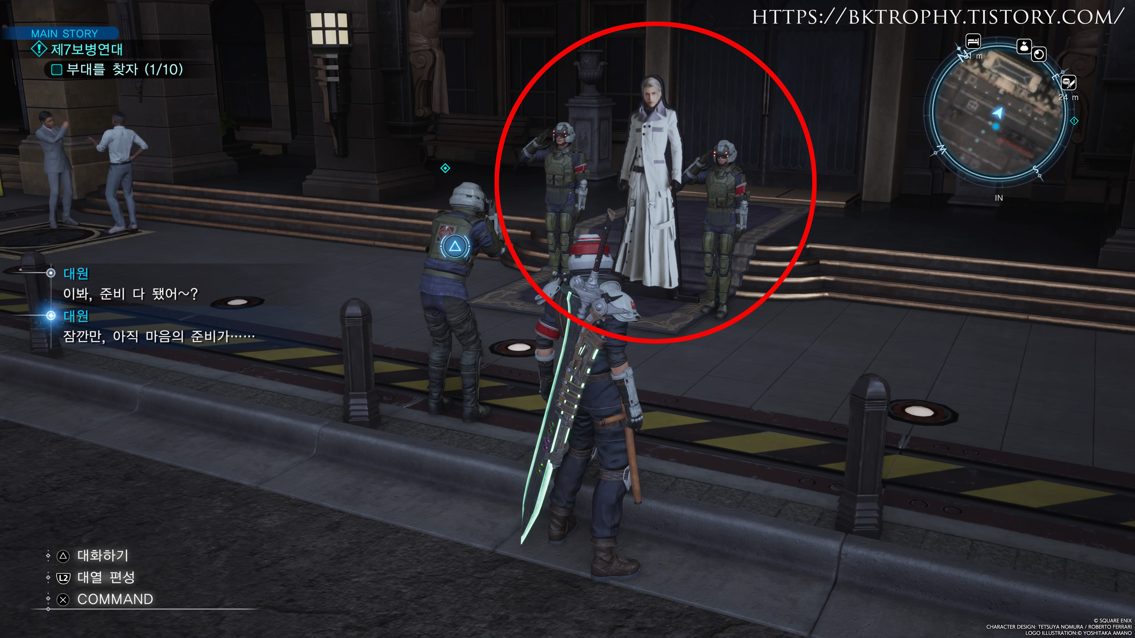 챕터 4 마지막에 퍼레이드가 끝난 후에 클라우드가 병사들을 데리고 주논을 탈출하게 되는데 이때 로체를 만나기 전까지 병사 A, B, C, D, E 다섯명을 한 명도 죽이지 않고 챕터 마지막 보스인 로체까지 도달하면 인형을 얻게 됩니다. 이 컬렉션은 되도록이면 엔딩이후 챕터 선택으로 진행을 하는게 좋습니다. 왜냐하면 병사들이 죽기전에 클라우드가 빠르게 적들을 처리해야 하는데 메인 스토리 진행중에는 레벨이 낮아 전투병을 커버 하기가 무척 힘듭니다. 전투중에 전투병에게 물약이나 회복 마법을 사용하는게 가능하지만 클라우드의 레벨이 낮아서 어렵다 하시는 분은 마음 편하게 엔딩이후에 챕터 선택으로 편하게 얻으세요 클라우드의 레벨이 높을수록 이 컬렉션을 획득하기가 쉬워 집니다.