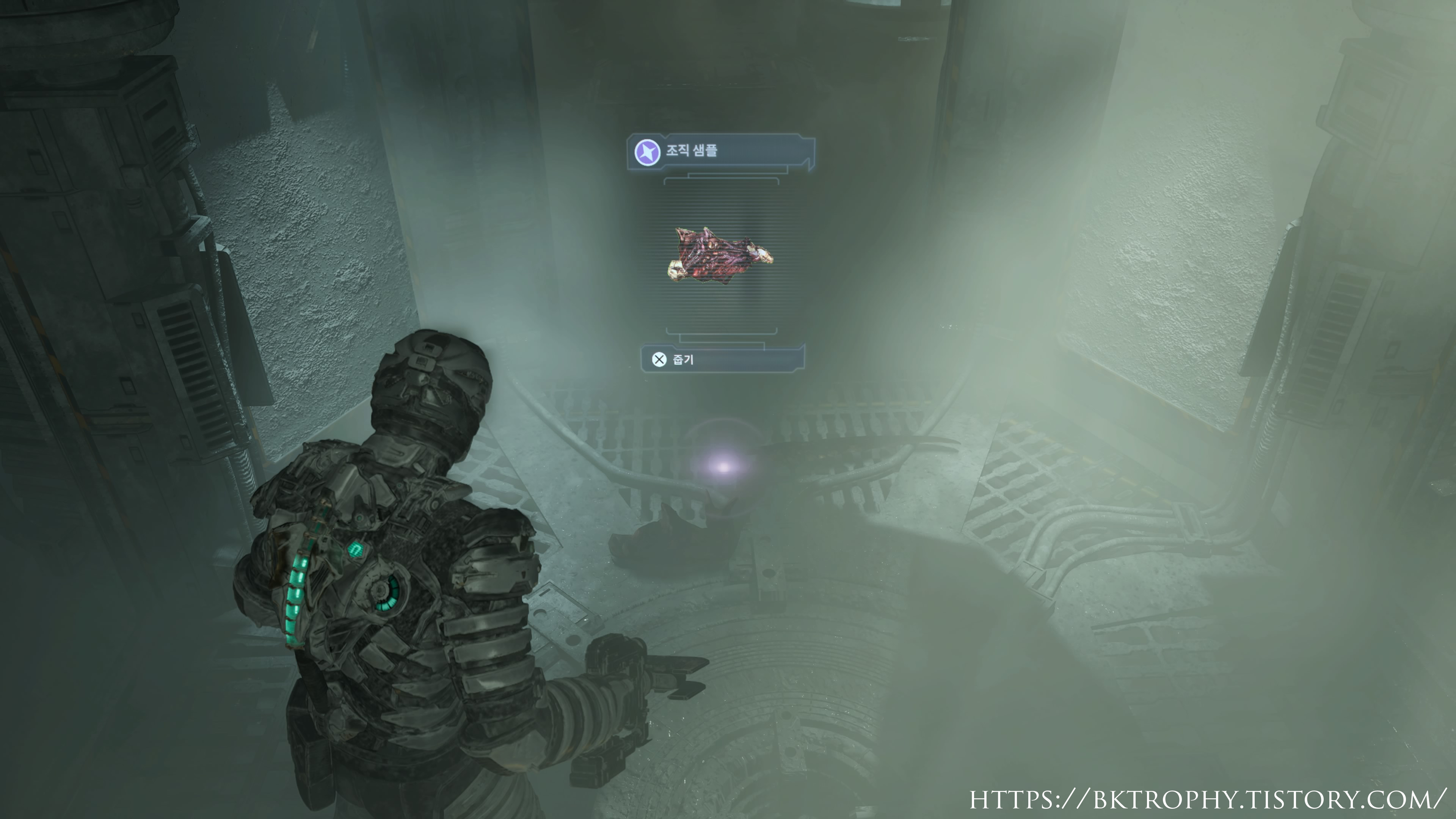 이 트로피는 원래 네크로 모프의 팔 다리가 약해졌을때 키네시스로 강제로 뜯어내야 얻을수 있는 트로피지만 아주 쉽게 트로피를 얻는 방법이 있습니다. 챕터 2를 진행하면서 의료실로 갔을때 하이드라진 탱크를 얻으러 무중력 치료 정비실로 갑니다. (아래 위치 참고)